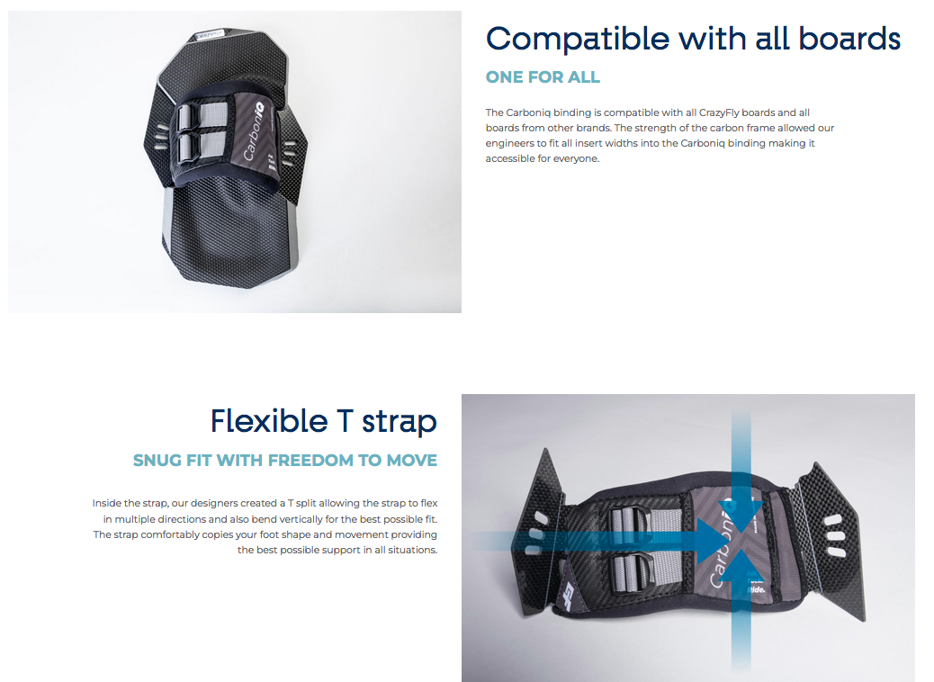 The Carboniq binding is like no other. It sits in a category of its own. At the top. With plenty of never before seen features and by far the best comfort, connection and safety. Now compatible with all twin tip boards from CrazyFly and other brands.