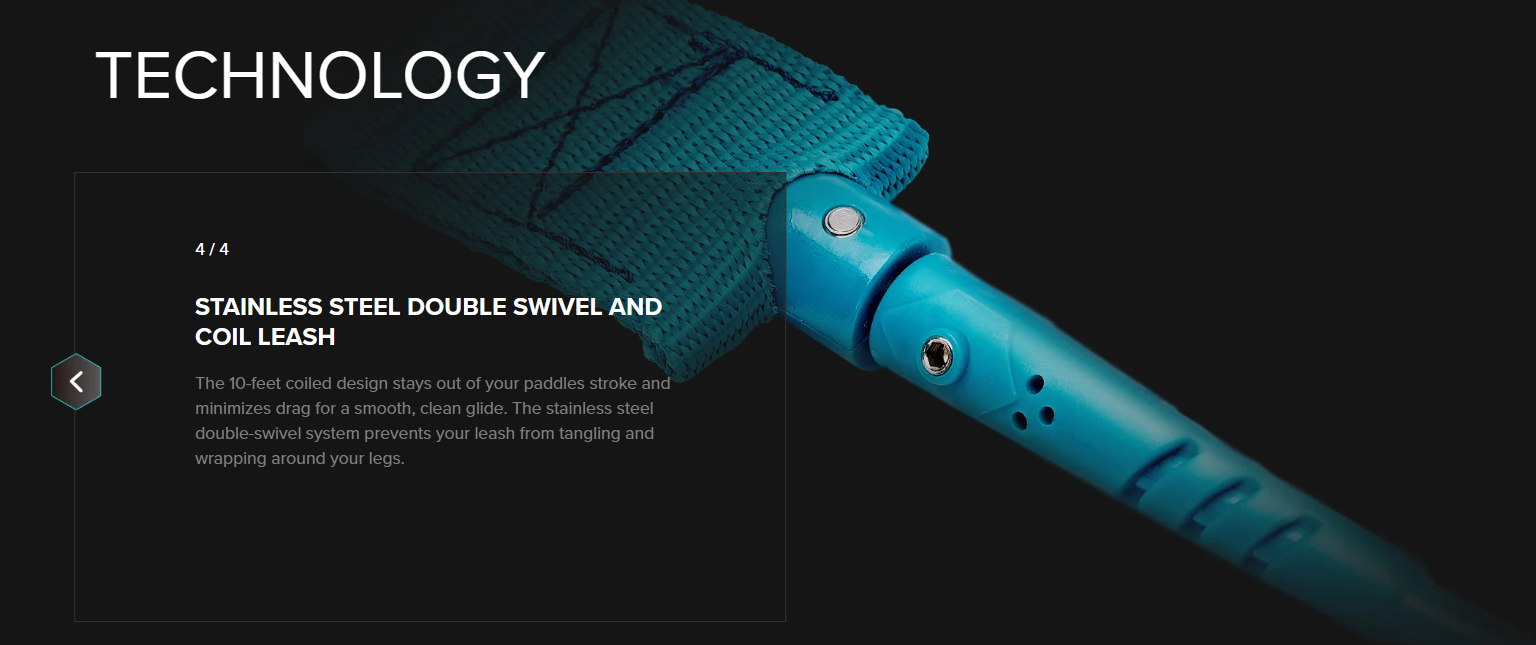 Su diseño coil de 10 pies con cuerda de uretano evita que se enrede en el agua y reduce la torsión en el tobillo, entregando máxima firmeza y confianza durante la navegación.